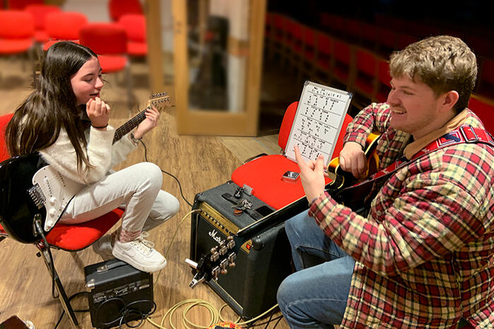 We have two music schools both held at St Therese of Lisieux Parish Church Hall, Ingleby Barwick, Stockton-on-Tees on Tuesday and Wednesday evenings.Part of our lessons take part in a fun rock/pop band environment and this enables students to experience the fun of “jamming” together from their very first lesson. We also teach guitar and drum theory too using our very own ‘easy to learn’ teaching modules.Many children come to us with different levels of skills and ability. We see all kinds, predominately they have no music ability whatsoever, yet have a strong desire to learn.We have seen many times throughout the years just how music involvement can also increase a child’s confidence. Our schools are designed around the students having fun while they learn. We regard them as being social, and extremely rewarding too.